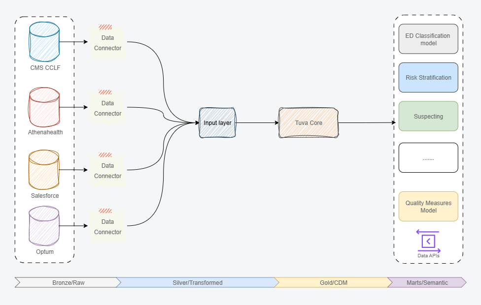 From raw data sources to analytics-ready marts using Bronze, Silver, Gold layers with Tuva Core CDM